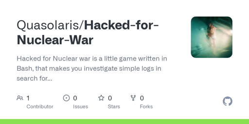 Hacked for Nuclear war is a little game written in Bash, that makes you investigate simple logs in search for Indicators of Compromise (IoC) that you get from the MITRE | ATT&CK collection. The submarines attacker, nation, logs and general behaviour of the systems is randomly generated for every play-through, and you will have multiple endings that are triggered through your actions.